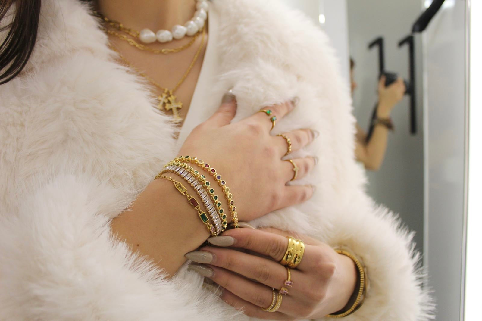 A delicate gold-tone bracelet featuring vibrant bezel-set stones that add a subtle pop of colour to any look. Lightweight, adjustable, and perfect for everyday wear or layering with your favourite pieces.Timeless, elegant, and effortlessly versatile.